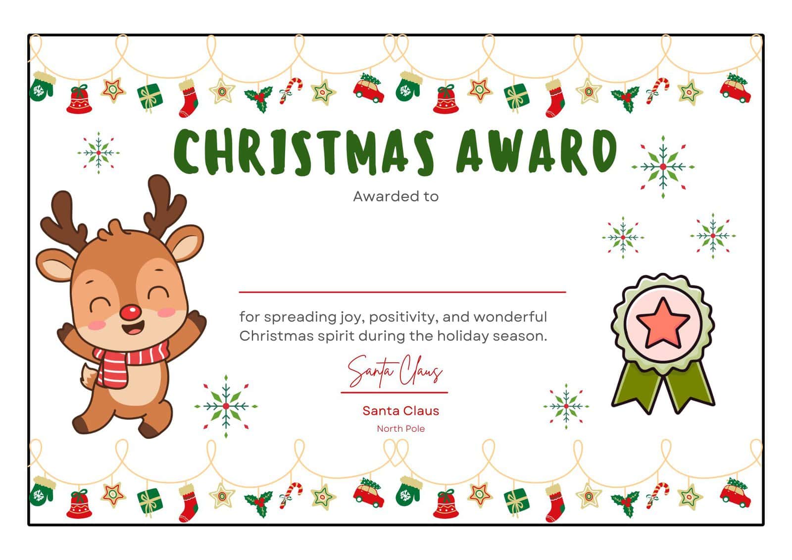 - Christmas Award for spreading joy, positivity, and wonderful Christmas spirit during the holiday season. This is a versatile Christmas award certificate suitable for students, coworkers, volunteers, friends, and family.