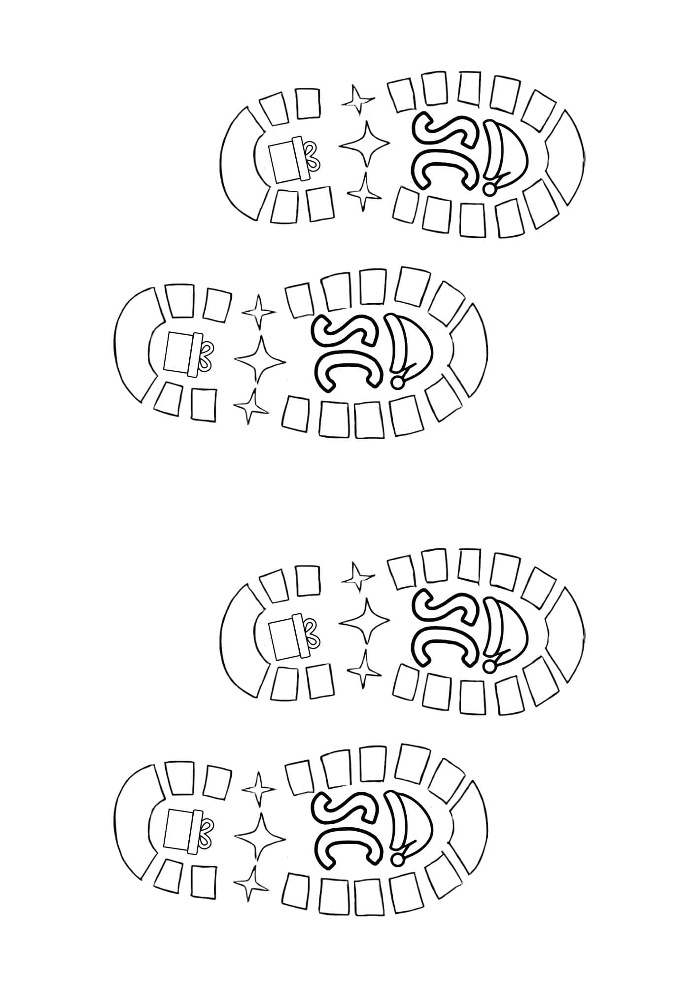 • Use as stencils to make snowy footprints. Simply use a paper knife to cut out the outlines of the foot prints to make your own stencils, and dust over the templates with baby powder, talcum powder, icing sugar, flour, or fake snow to create santa's footprints.