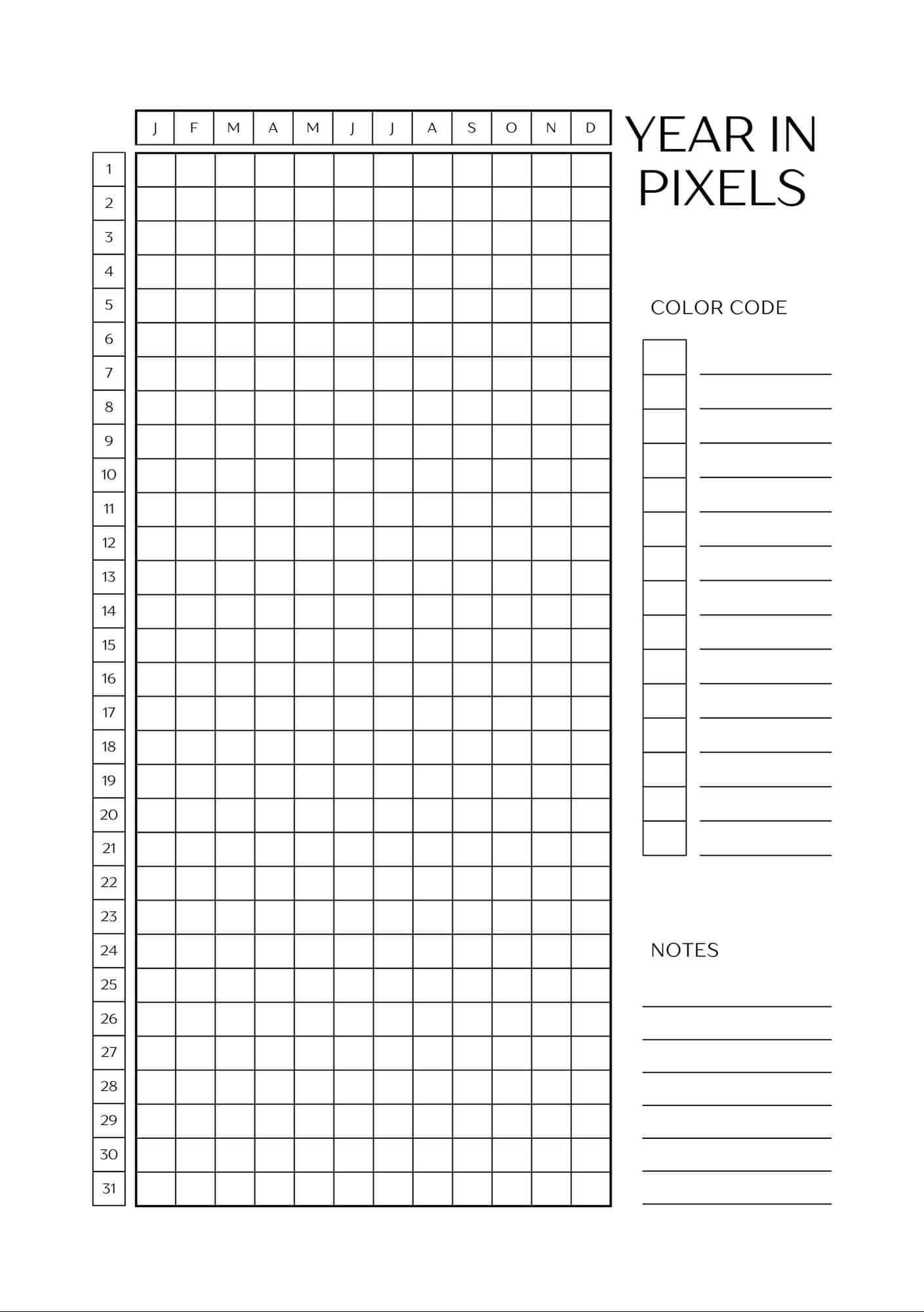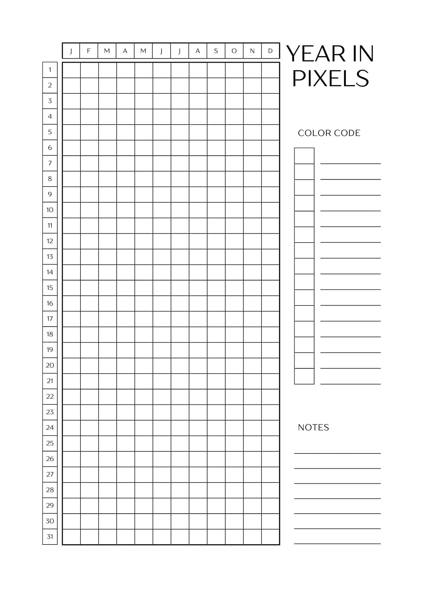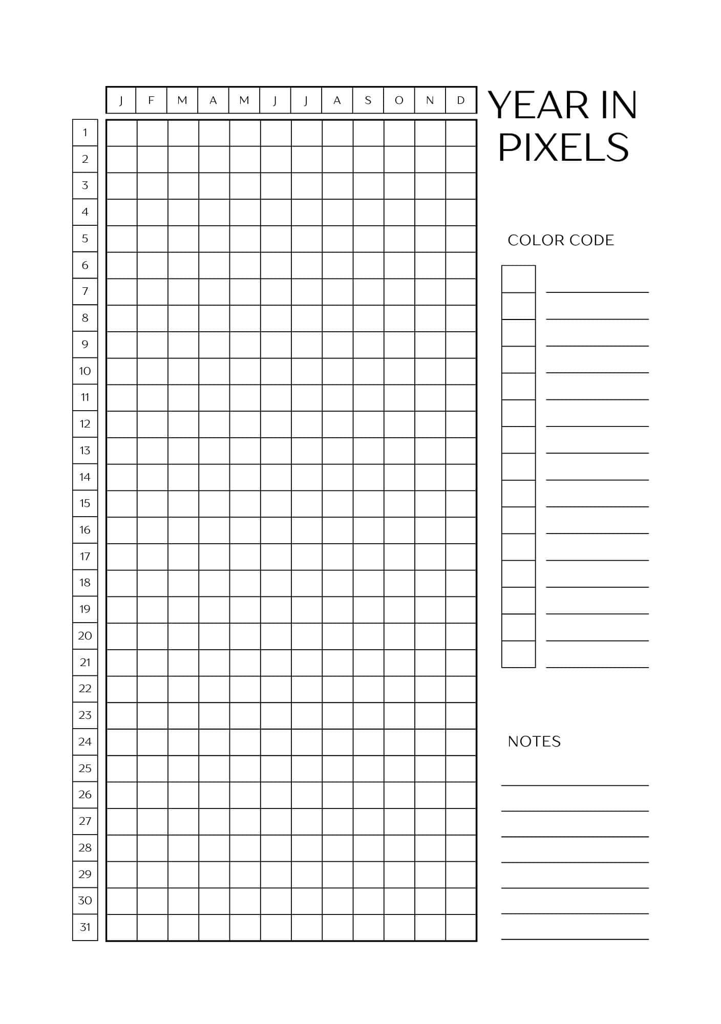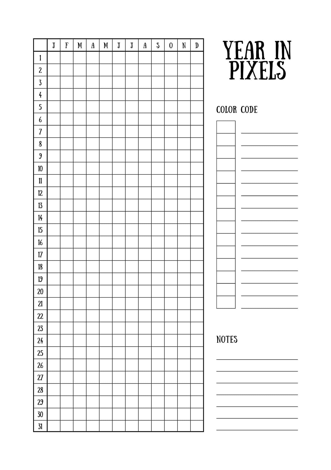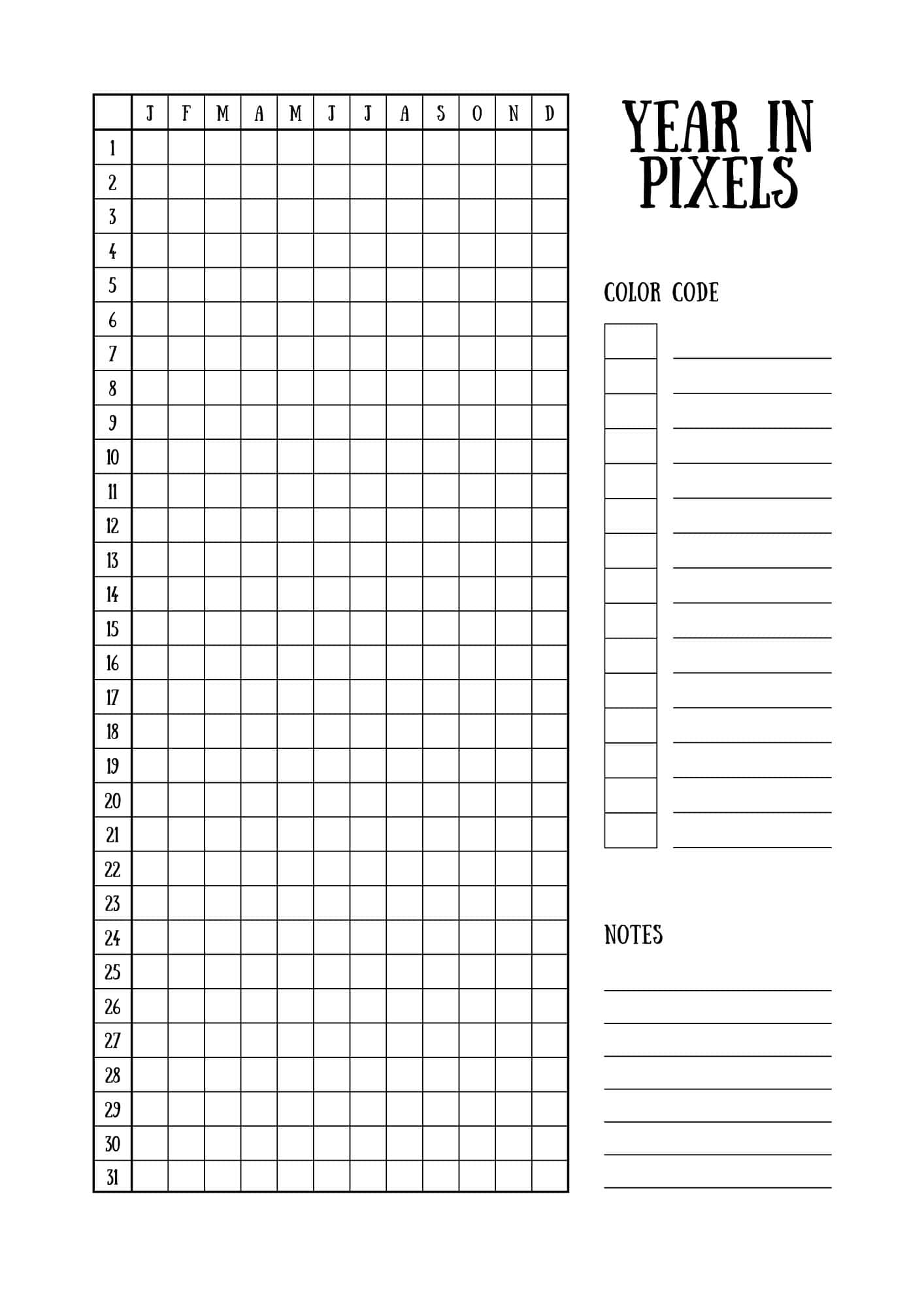 Year In Pixels Printable Templates (Free Yearly Tracker)