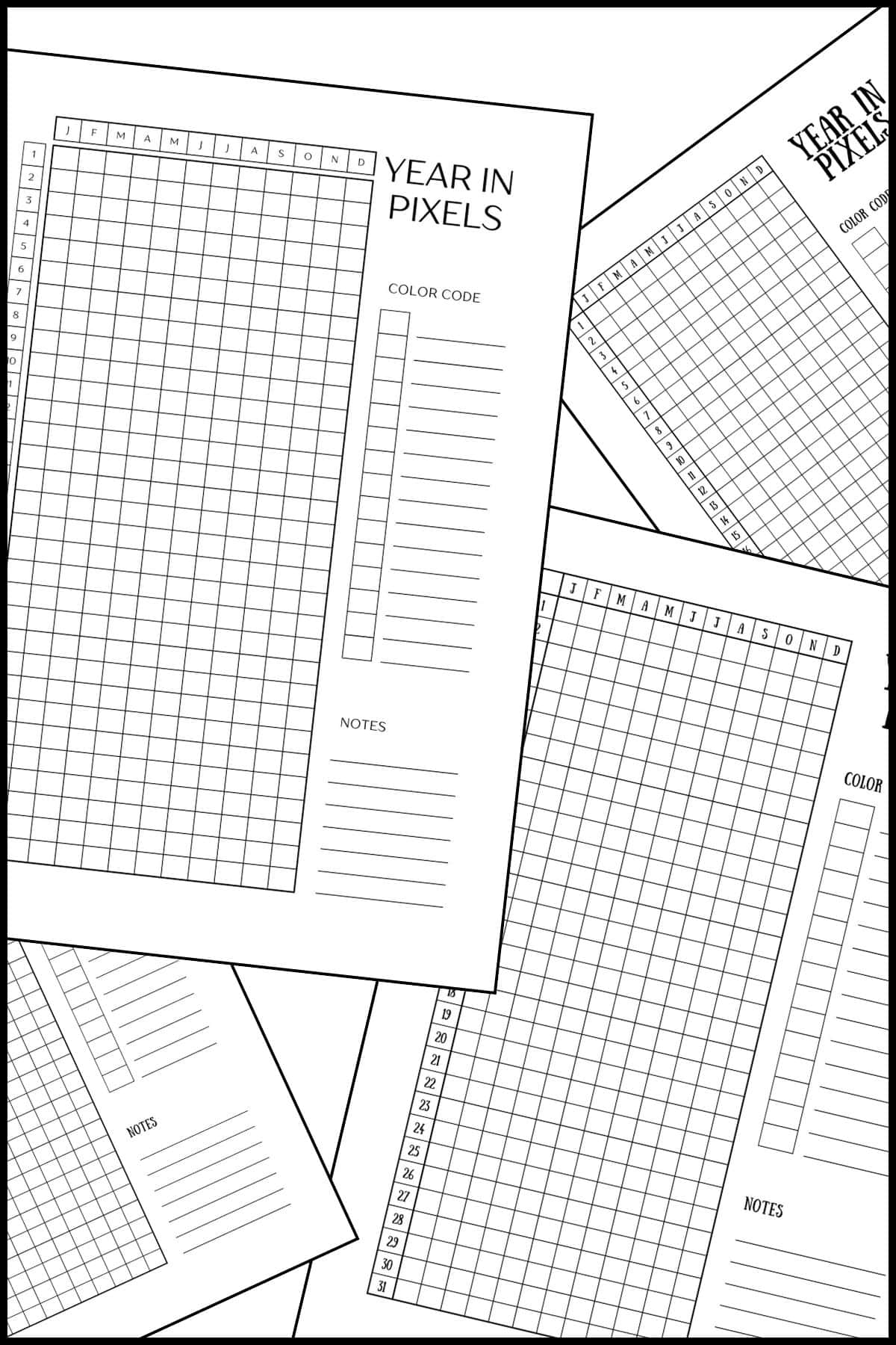 Year in pixels printable templates overlapping one another.